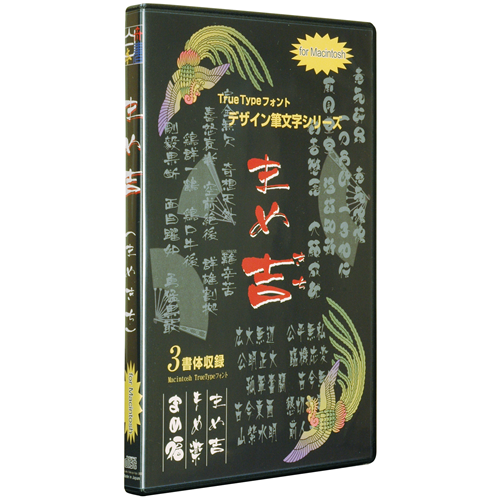 本製品は、Macintosh専用のCD-ROMで、「まめ吉」「まめ楽」「まめ福」の3つの書体を収録しています。